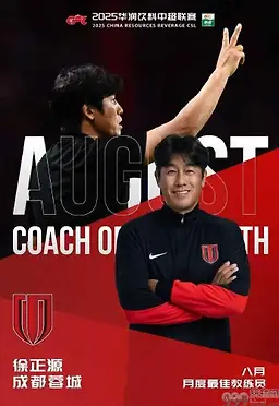 北京时间9月25日消息,今天中超官方公布了8月两个重要奖项的人选,目前排名榜首的成都蓉城队成为最大赢家,主帅徐正源和前锋费利佩分别当选8月最佳教练和球员。其中徐正源率领成都蓉城在8月出战4场联赛,3胜1平保持不败,打入9球仅丢2球,并且4